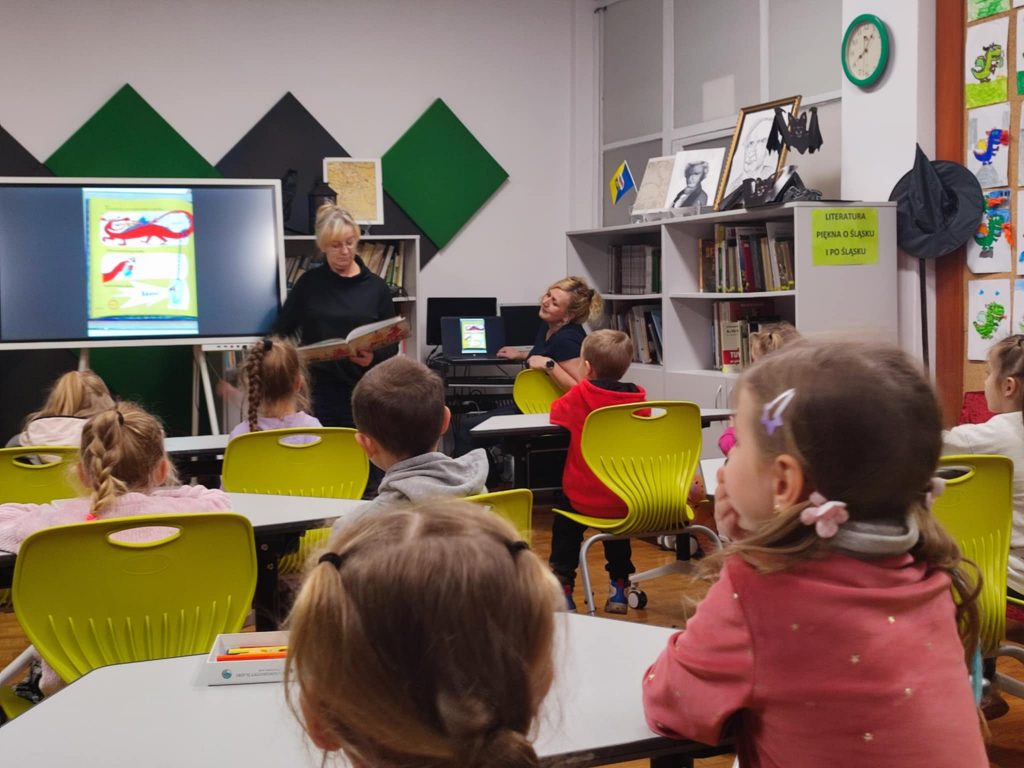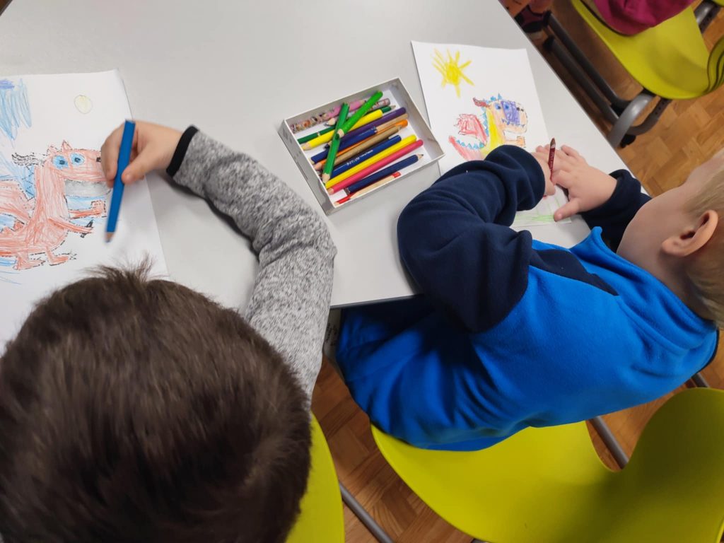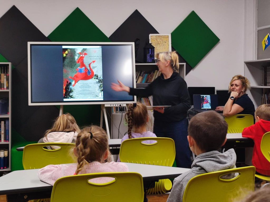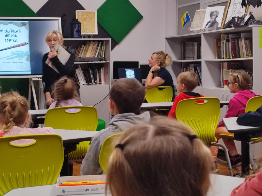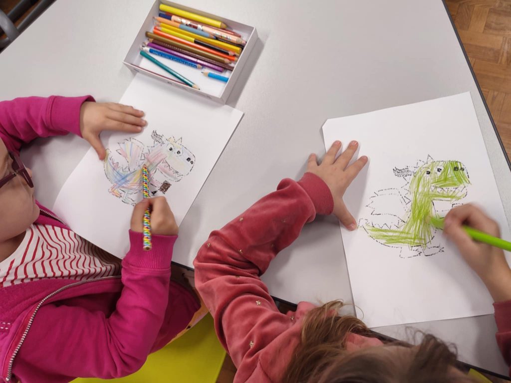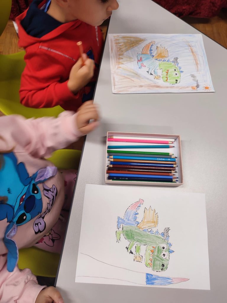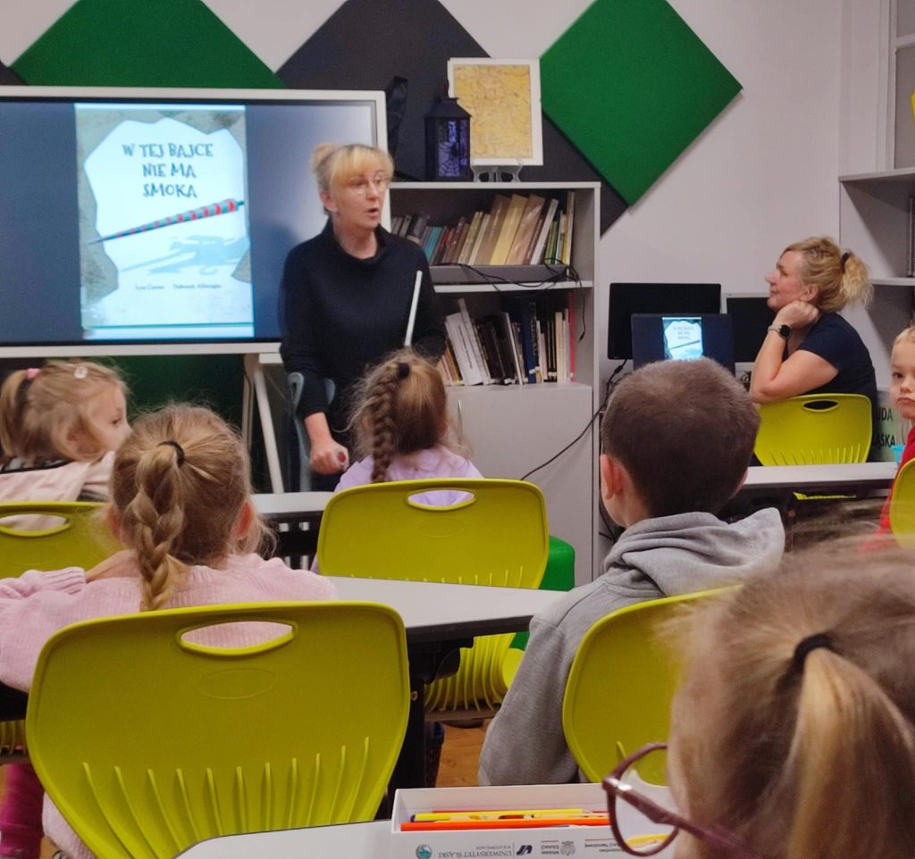 W naszej bibliotece znowu było smoczo! Tym razem przedszkolaki z grupy Motylki, a później Muchomorki poznały bajkę pod przewrotnym tytułem „W tej bajce nie ma smoka!” Okazało się jednak, że smok się znalazł i pojawił się również na obrazkach, które dzieci chętnie pokolorowały. Potem zaśpiewali piękne piosenki i z uśmiechem wrócili do przedszkola!