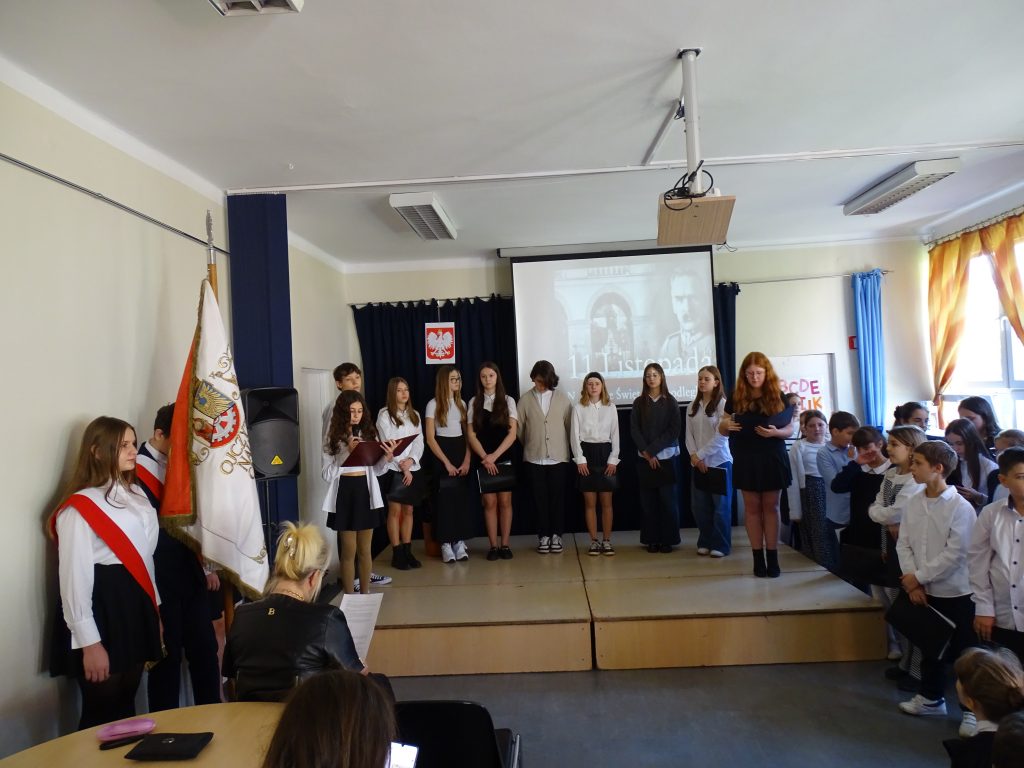 11 listopada uczciliśmy apelem. Uczniowie odświętnie ubrani odśpiewali uroczyście hymn państwowy.