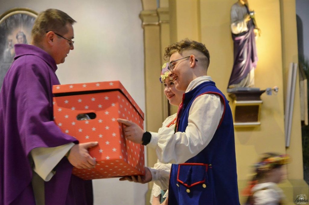 Jak co roku o tej porze w niedzielę społeczność szkolna uczestniczyła w zamówionej przez siebie mszy świętej z okazji rocznicy urodzin Patrona Szkoły, Jana Stefana Dworaka. Uczniowie w śląskich strojach nieśli dary ołtarza, w tym również duże pudło przygotowanych w szkole pierniczków, które będą podarowane starszym i chorym parafianom. Na mszy był również uroczyście wniesiony sztandar szkoły.